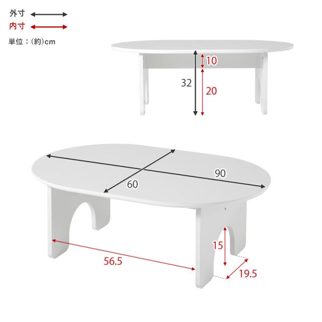 テーブル ローテーブル 90 おしゃれ 白 かわいい センターテーブル ホワイト 丸 1人 2人 食卓 座卓 机 韓国 北欧 オーバル型 シンプル リビング 一人暮らし 韓国インテリア 楕円 丸い リビング