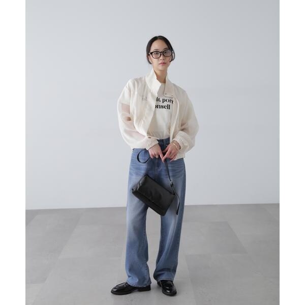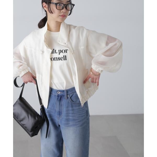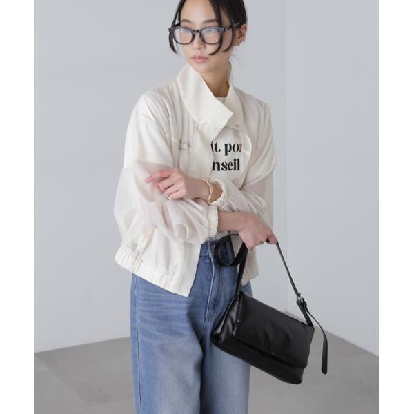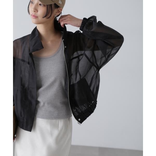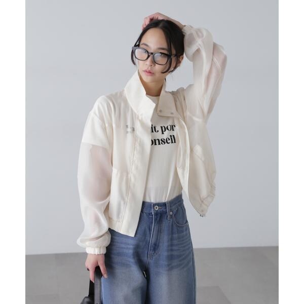 〔fabric&design〕毎年ご好評いただくリラックスしたオーバーサイズシルエットのシアーブルゾン。今期はスタンドカラーへアップデートしています。合繊のシアーボイルで若干のハリがある素材。シアーシャツほどくたっとせずブルゾンに適した生地です。ブルゾン縫製でカジュアル過ぎず仕立てにもこだわった1枚です。袖口と裾をゴムできゅっとさせたギャザーで表情を加え、スタイリングした際もパンツからスカートまでバランスが取りやすい着丈感です。〔styling〕パンツ、スカート、ワンピース問わずスタイリングしやすく、シャツのような着こなしができ、冷房対策アイテムとしても重宝してくれます。肩掛けなどしてプラスワンアイテムとしても◎。