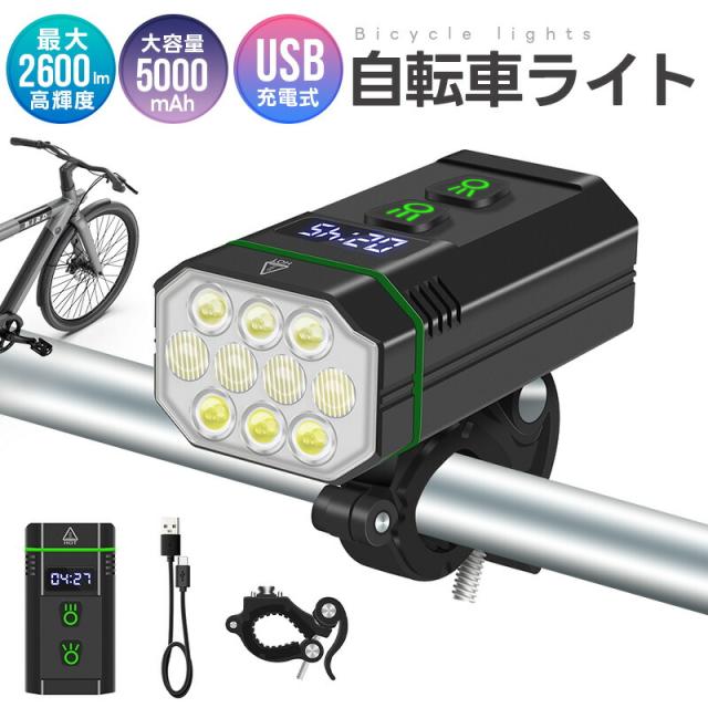 自転車ライト led ライト フロントライト 充電式 照明 屋外 usb 5000mAh 高輝度 防水機能 アルミ合金製 小型 IP66 明るさ調整 輝度調節