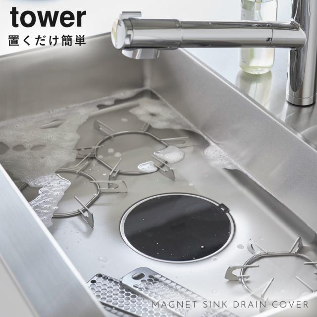 マグネット浸け置き洗いキャップ タワー 山崎実業 tower シンク掃除 シリコン シンク 排水口 ふた 14.5cm おしゃれ モノトーン ホワイト ブラック 1316 1317 メール便対応
