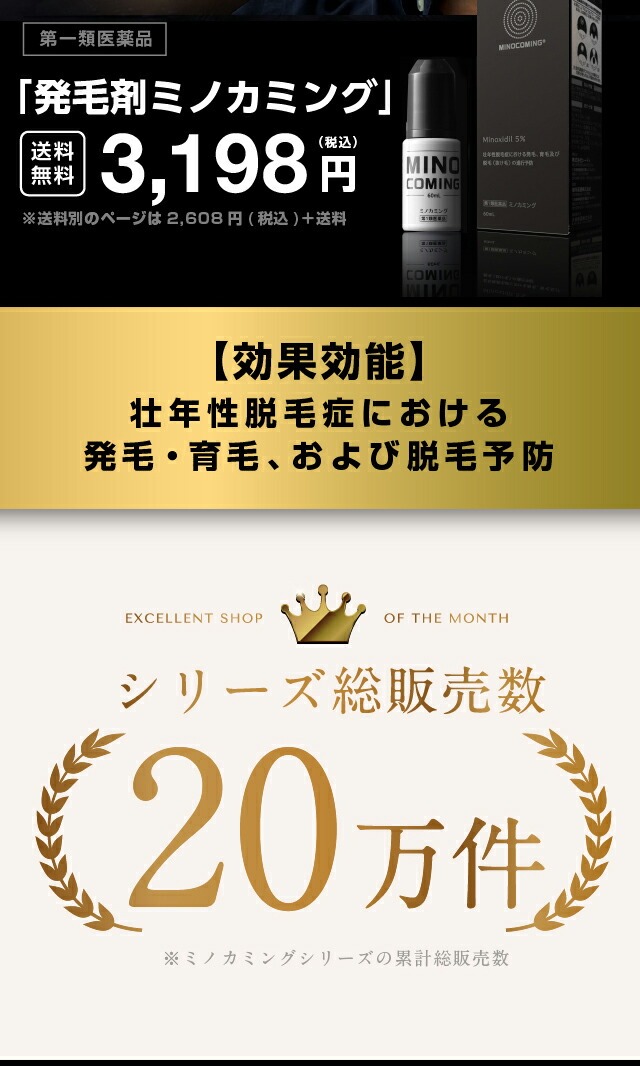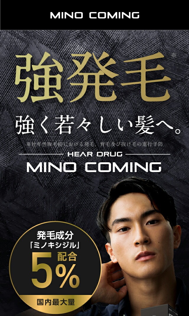 ○ミノカミングは有効成分であるミノキシジルを5%配合した男性用の発毛剤です。