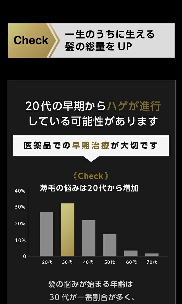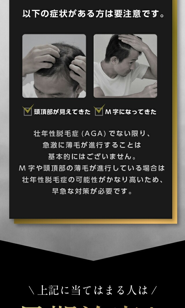 [壮年性脱毛症以外の脱毛症であったり、脱毛が他の原因によるものである可能性があります。]