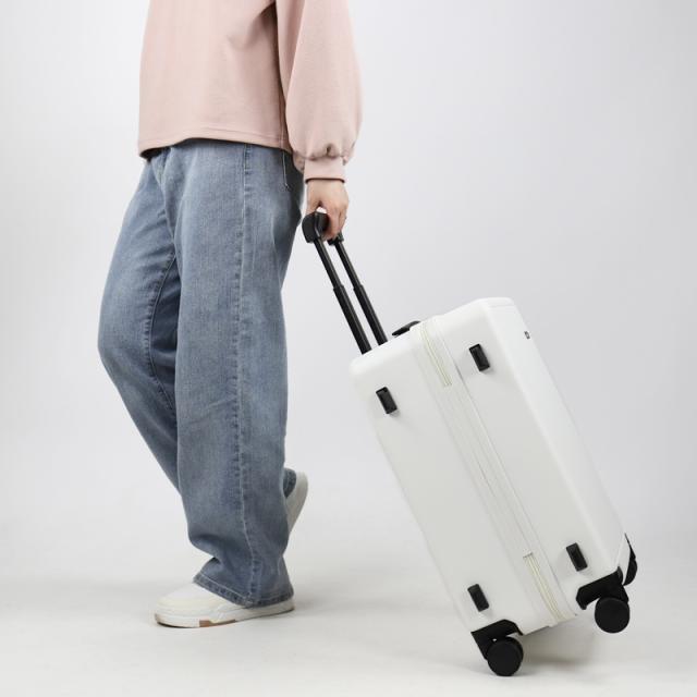 スクエアのシルエットとブライトカラーが目を引くおしゃれなスーツケースシリーズ。