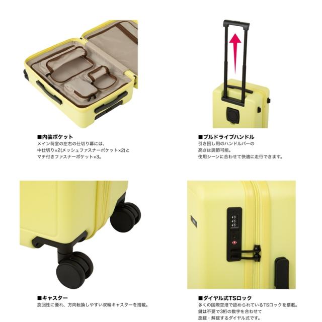 TSダイヤルファスナーロック(Travel SentryR認可ロック)搭載で、施錠したまま預け入れ可能。