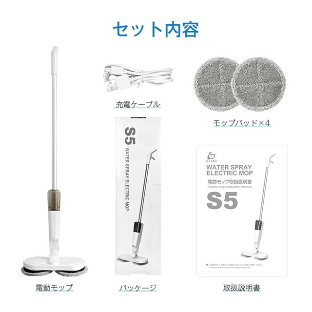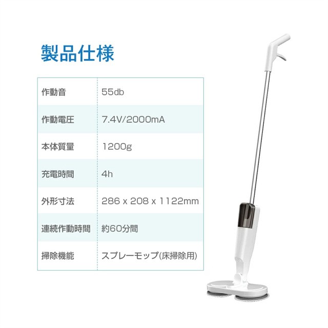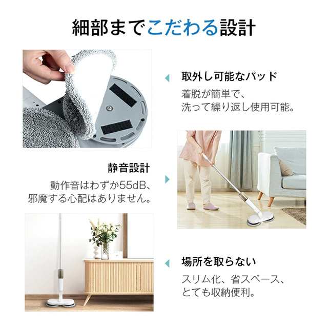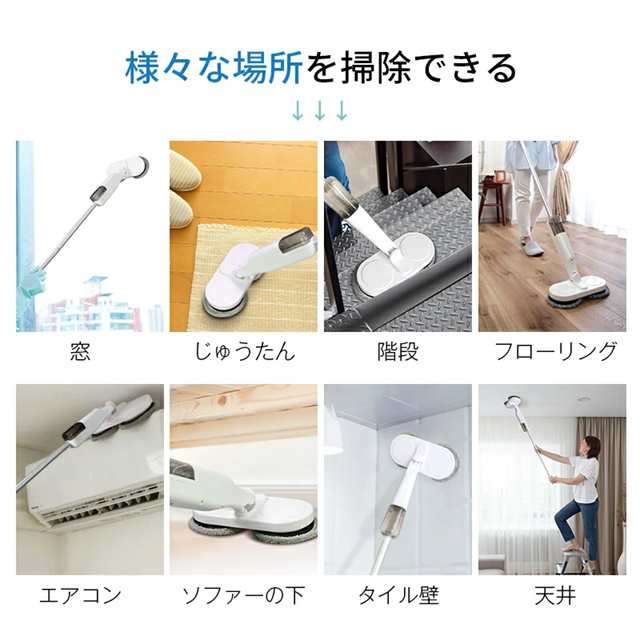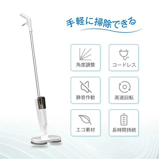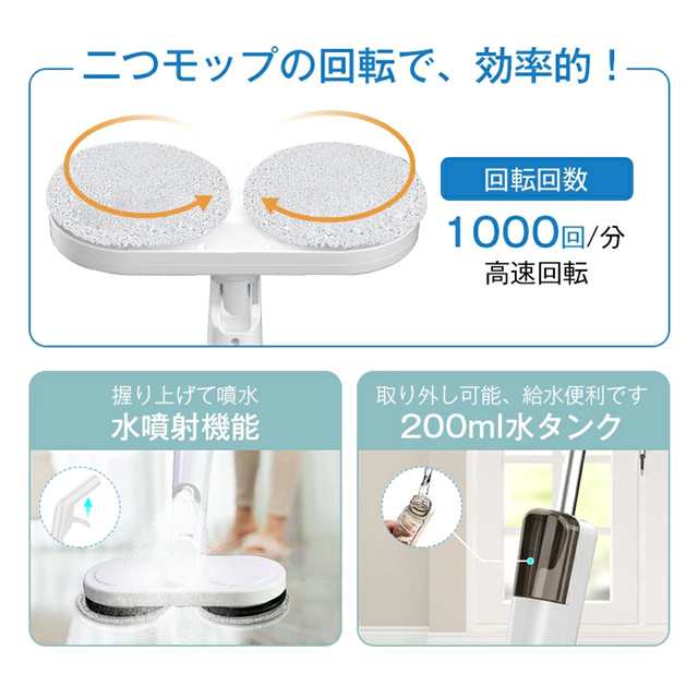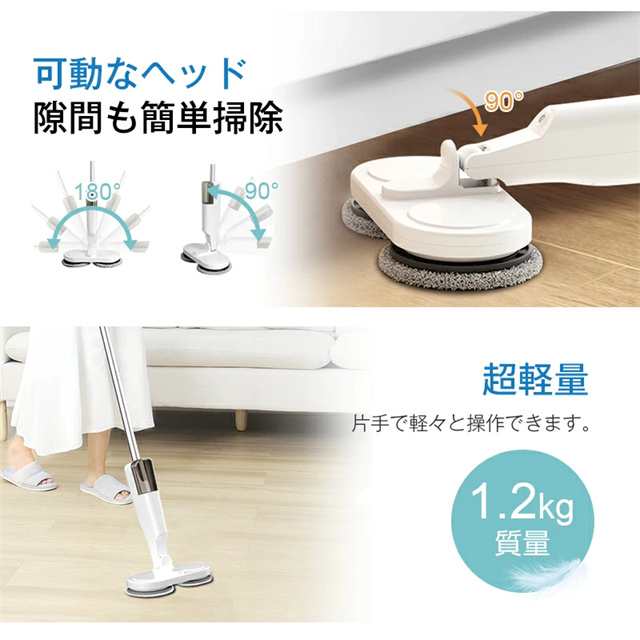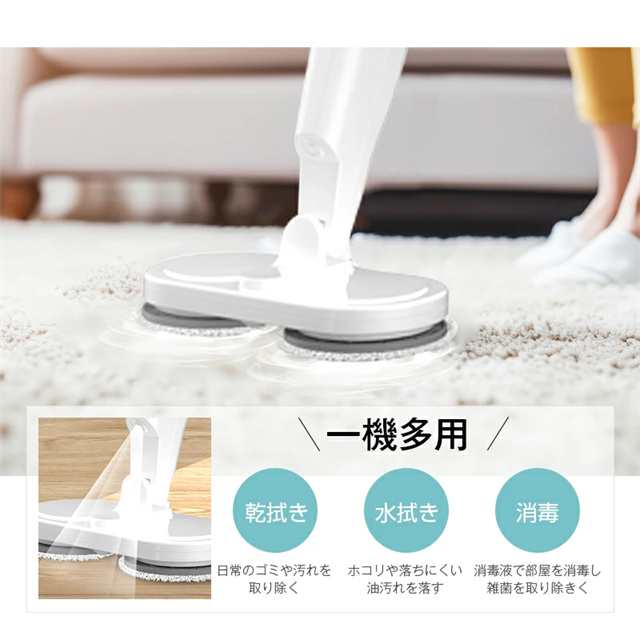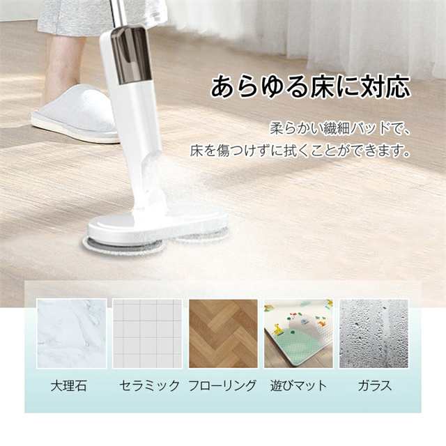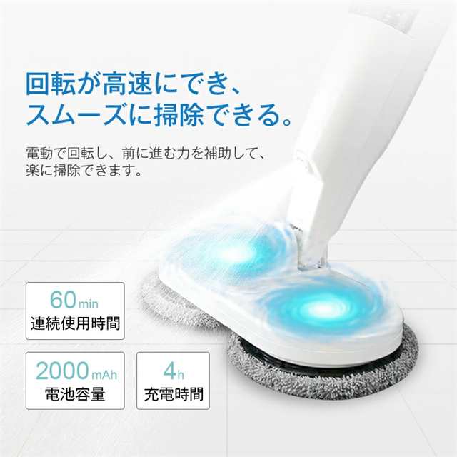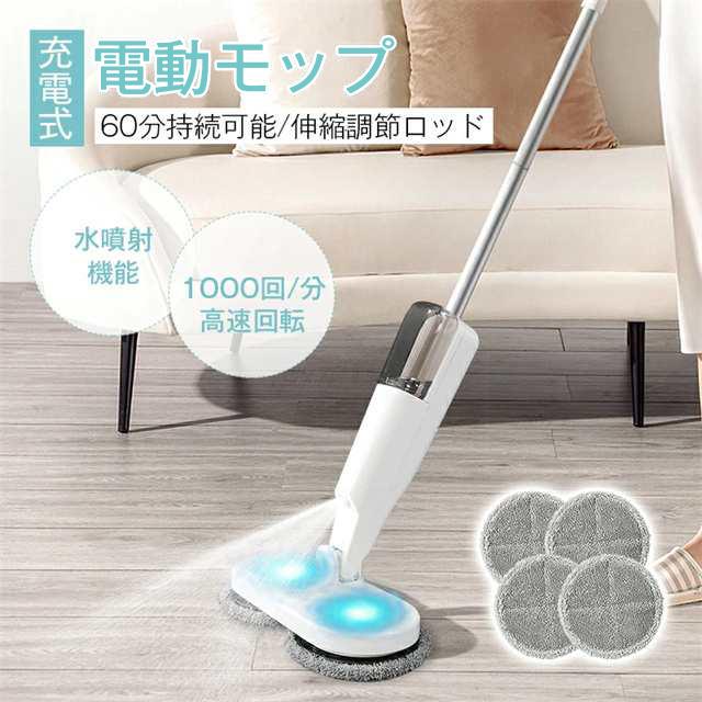 新品 送料無料 電動モップ 回転モップ 電動コードレス 自動回転モップクリーナー パッド付き 水噴射 電動回転モップ 充電式 水拭き 手が汚れない 床掃除 畳掃除 床拭60分連続作動可能 静音作動 大容量水タンク付き コードレス