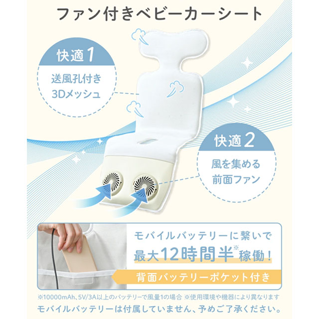 赤ちゃん ひんやり ベビーカー ベビーカーシート 熱中症対策 クーラーファンシート 扇風機 クーラー ファン 車内 バウンサー ベビーベッド ハイチェア 快眠 チャイルドシート 熱中症予防 シート 汗 通気性 お出かけ プレゼント 冷風 風 自然風 クール ファン付き ファン付 シートファン ファン付シート ファン付きシート ベビーシート 保冷 冷却グッズ 暑さ対策 便利グッズ 冷却 熱中症 対策 予防 背中ひんやり 冷たい 涼しい 夏 アウトドア こども 子供 ベビー 出産祝い