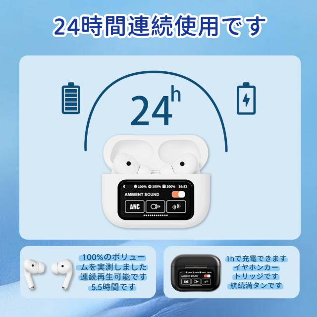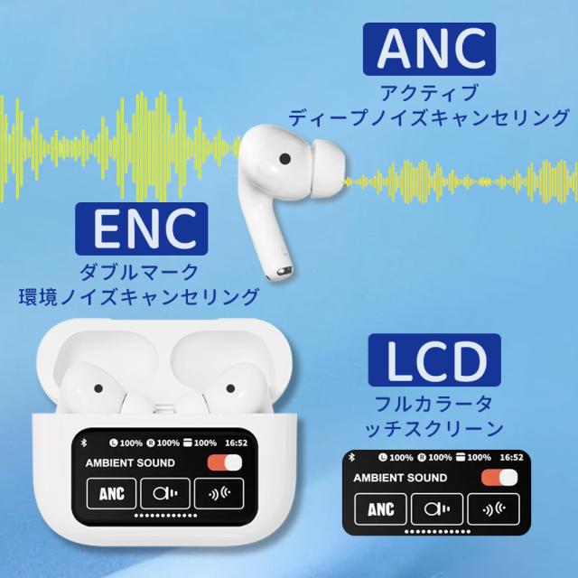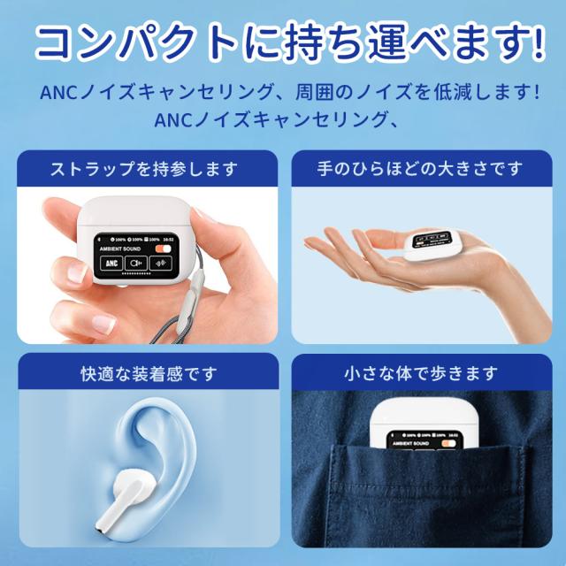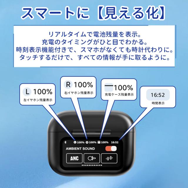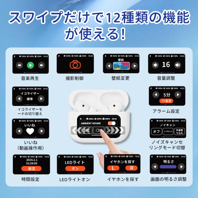 爆売!2025最新型タッチパネル搭載 ワイヤレスイヤホン イヤホン iPhone Android インテリジェントワイヤレス 液晶付き LEDタッチパネル 通話 高音質 アンドロイド かわいい 両耳 Bluetooth ワイヤレス 音楽再生