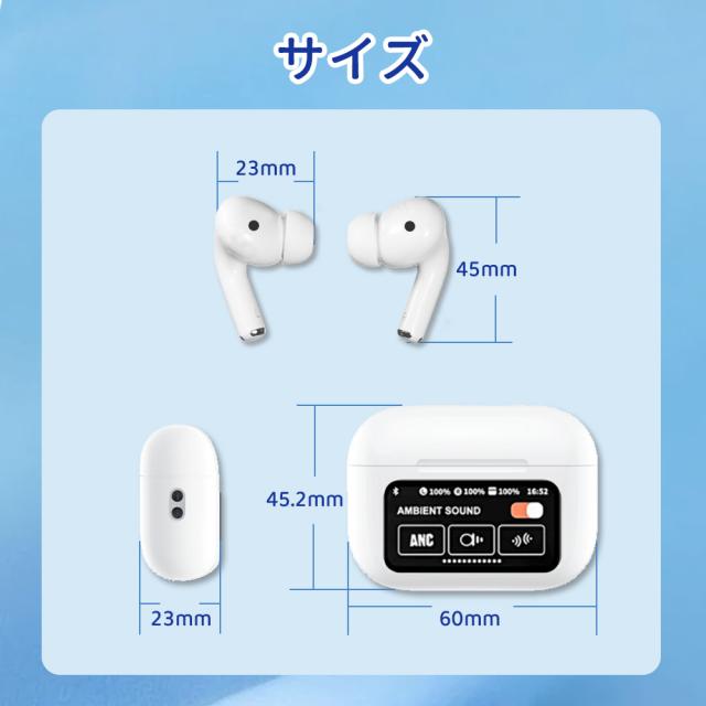 ●充電ケースのサイズ:約45.2×60.3×23mm