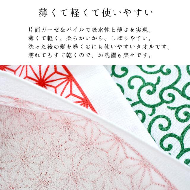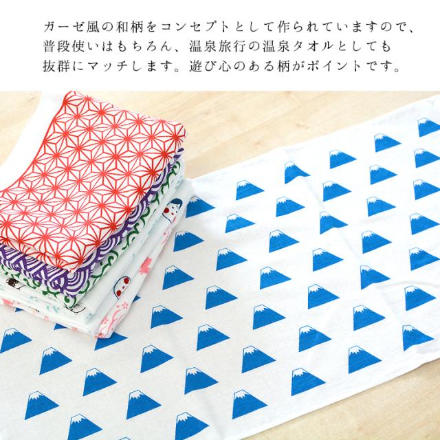 ガーゼ風の和柄をコンセプトとして作られていますので、普段使いはもちろん、温泉旅行の温泉タオルとしても抜群にマッチします!