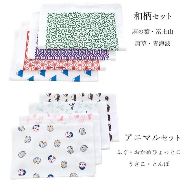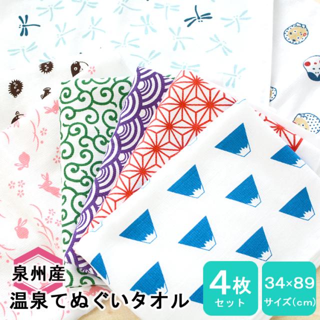 日本製 和柄 ガーゼタオル 手ぬぐい 温泉タオル 4枚セット フェイスタオル ガーゼ風和柄タオル 薄手 泉州タオル てぬぐい お風呂 サウナ ガーデニング タオル 富士山 唐草 麻の葉 ふぐ トンボ おかめ ひょっとこ 母の日 父の日 【沖縄県除き送料無料】