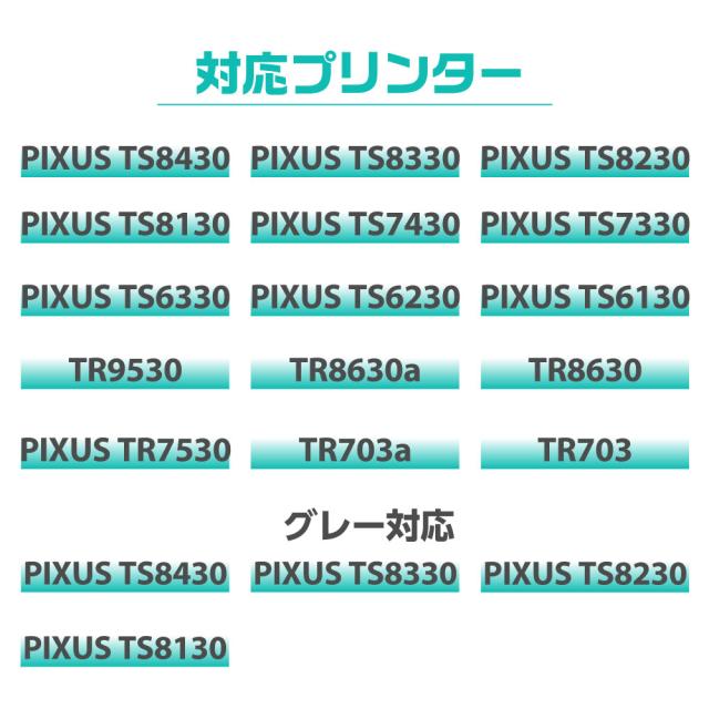 | 商品特徴 | ■商品内容 ・Canon互換 BCI-380 ブラック1本 ・Canon互換 BCI-381 ブラック1本 ・Canon互換 BCI-381 シアン1本 ・Canon互換 BCI-381 マゼンタ1本 ・Canon互換 BCI-381 イエロー1本 ・Canon互換 BCI-381 グレー1本 ■対応プリンター 機種一覧 本製品は、PIXUS TR703/TR7530/TR8530/TR8630/TS6130/ TS6230/TS6330/TS7330/TS8130/TS8230/TS8330/TS8430/TR9530のプリンターに対応しております。 ※BCI-381互換グレーは、PIXUS TS8130/TS8230/TS8330/TS8430のみ対応しております。 ■低価格の理由 信頼できるメーカーと直接取り引きをすることで、物流コストを削減し、低価格でのご提供が実現しました。 ■印刷枚数アップ 純正品よりも容量が多いため、一度の交換でたっぷり印刷することができます。 ■高発色 純正品に負けない高精彩・高発色のため、純正品と比較しても違いがわからないほどの印刷品質を実現しています。 ■国際基準認定工場 信頼できるISO9001認証工場にて製造しています。安心の個別包装で、製品破損あるいはインク漏れなどの不具合を防ぎます。 ■ご注意事項 本製品は純正品ではありません。 純正品との併用は問題ありませんが、別々の互換品メーカー同士の併用は避けてください。 また、ご使用の際は説明書に従って正しく取り付けてください。 |