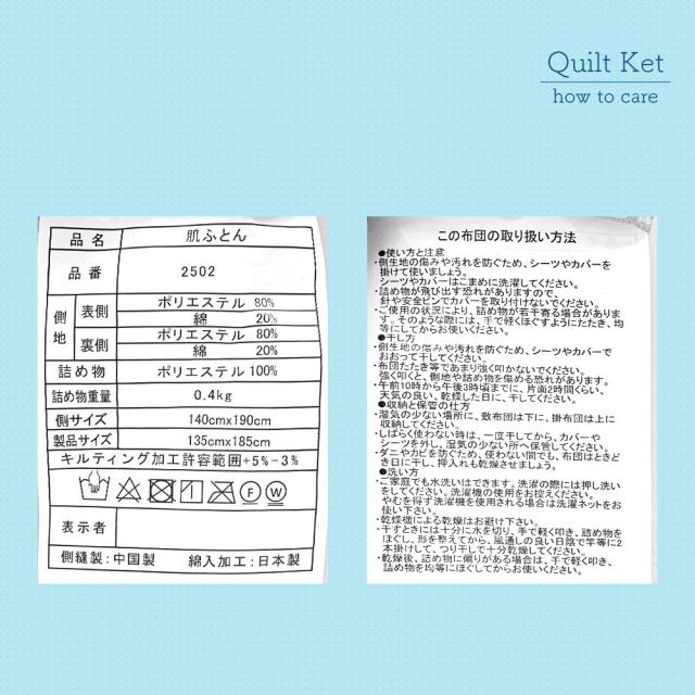 【300円値下!】肌布団 掛け布団 シングル 日本製 夏掛け ガーゼ調 洗える キルトケット ★当店人気商品★ 製品サイズ135×185 側サイズ:140×190