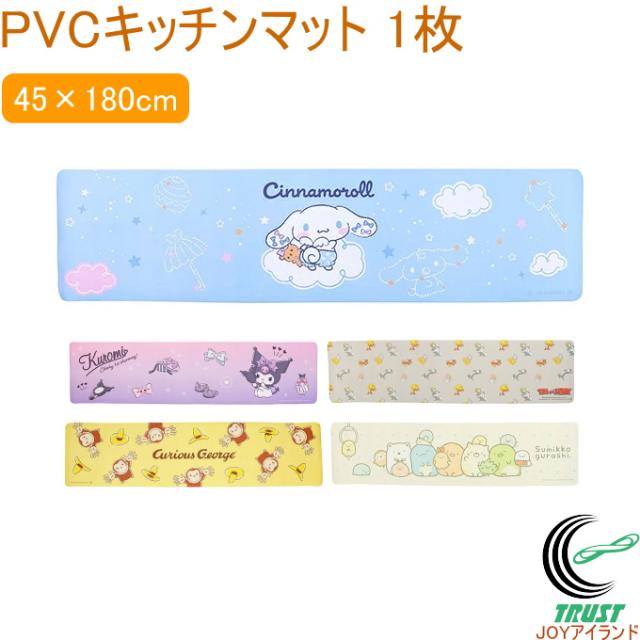 PVCキッチンマット 45×180cm 1枚 送料無料 キッチン マット 撥水 はっ水 拭ける すべりにくい 洗濯不要 5mm厚 キャラクター PVCマット インテリア お手入れ簡単 シナモロール トムとジェリー クロミ おさるのジョージ すみっコぐらし おしゃれ かわいい 水野