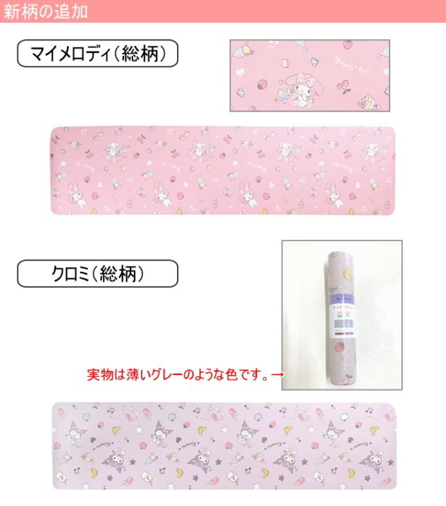 PVCなので調味料などをこぼして汚してもサッと拭くだけで簡単にお手入れができます。 パイル生地のマットとは違いお洗濯も不要です。 さらにクッション性があるので足への負担も軽減してくれます。 マット裏面はすべり止め加工がされていますので、小さなお子様がいるご家庭でも安心。 キャラクターのデザインがとってもかわいくて、家でも使いやすい商品となっております。 ※イメージ画像と実際の商品では色合い等多少異なる場合がございますが、予めご了承ください。 ※新柄のクロミ(総柄)は薄いグレーのようなの色味です。 ■その他のキッチンマットはこちら↓ キッチンマット |