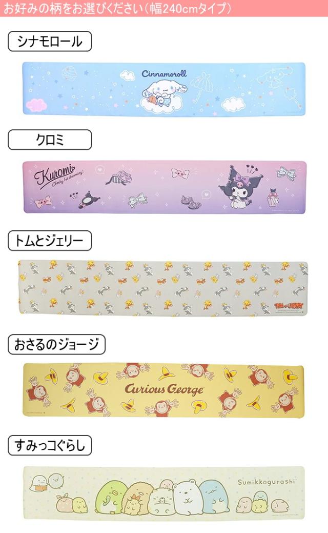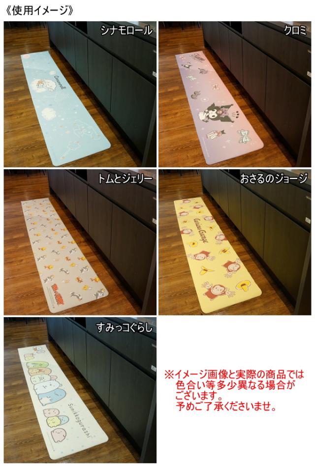 PVCキッチンマット 45×240cm 1枚 送料無料 キッチン マット 撥水 はっ水 拭ける すべりにくい 洗濯不要 5mm厚 キャラクター PVCマット インテリア お手入れ簡単 シナモロール トムとジェリー クロミ おさるのジョージ すみっコぐらし おしゃれ かわいい 水野