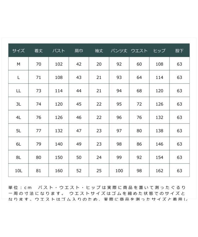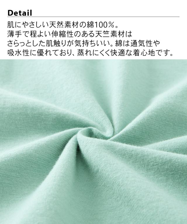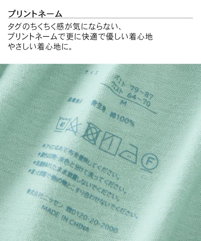 品質=身生地:綿100%(天竺) この商品は環境負荷低減のため、下げ札等の付属品はございません。 原産国:中国製 備考:洗濯機OK ※お洗濯は、必ず取り扱い表示にしたがってください。 ※単位:cm ※バスト・ウエスト・ヒップは実際に商品を置いて測ったぐるり一周の寸法になります。 ※ウエストサイズはゴムを縮めた状態でのサイズとなります。ウエストはゴム入りのため、実際に商品を測ったサイズと着用した時のサイズは異なります。 ※サイズの誤差は多少発生します。