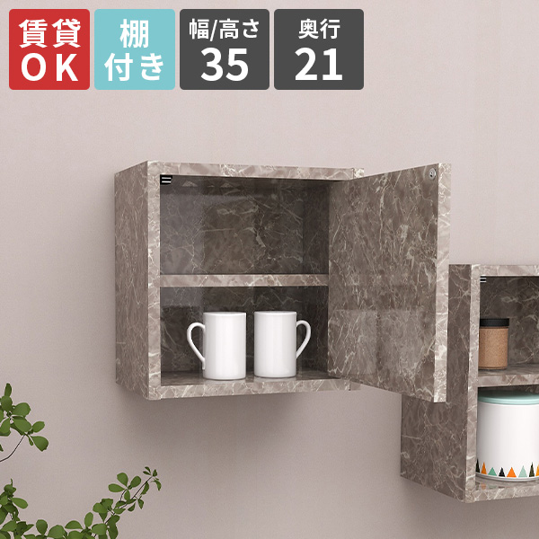 ウォールラック 壁掛けラック 壁面ラック 棚付き グレー おすすめ 省スペース 玄関 壁付け 大理石調 薄型 壁面 ウォール スペース 収納棚 ボックス 飾り棚 トイレ 壁面収納 キッチン 賃貸 寝室 食器棚 リビング収納 収納家具 ワードローブ 幅35cm 奥行21cm 高さ35cm ★