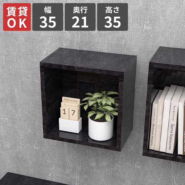 壁掛けラック 壁面ラック ウォールラック 正方形 ブラック おすすめ ワードローブ 飾り棚 本棚 収納ラック 石膏ボード 家具 おしゃれ ディスプレイラック 薄型 リビング収納 壁面棚 ボックス 壁付け お部屋 棚板 日本製 洗面所 シンプル 幅35cm 奥行21cm 高さ35cm ★