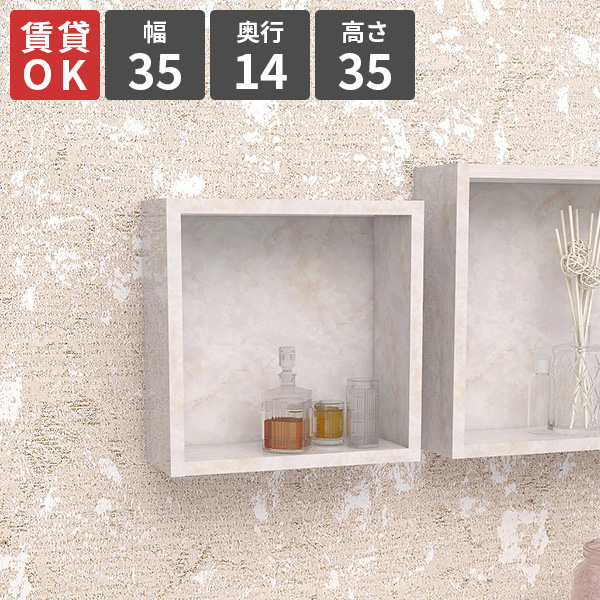 ウォールラック 壁掛けラック 壁面ラック 正方形 ホワイト おすすめ 部屋 シェルフ 食器棚 整理 日本製 収納家具 取り付け ウォール 大理石調 壁面 収納ボックス 家具 神棚 ディスプレイラック 壁付け ワードローブ 玄関収納 トイレ 本棚 幅35cm 奥行14cm 高さ35cm ★