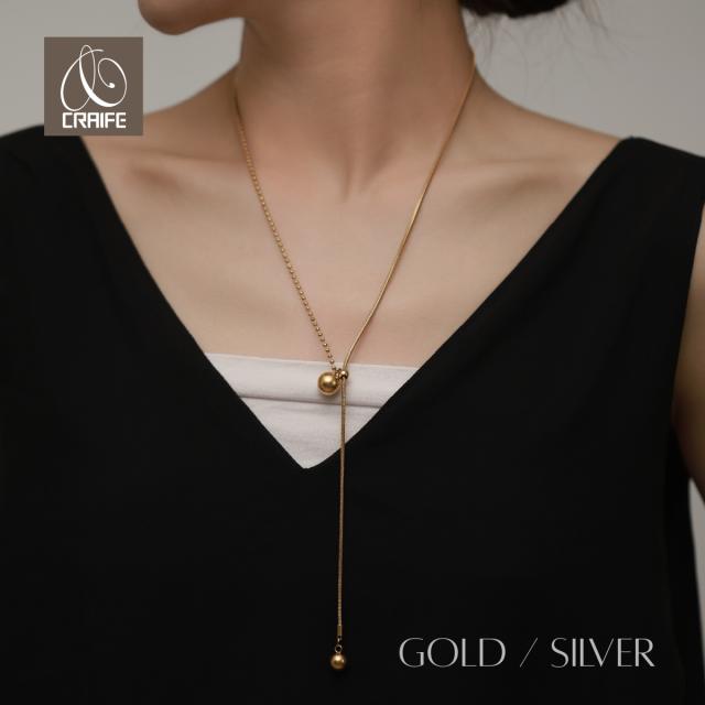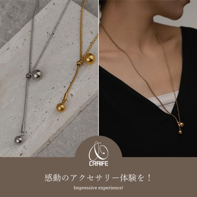 ネックレス ラリエット サージカルステンレス 316L 金属アレルギー対応 18K コーティング レディース 大人 かわいい シンプル エレガント ジュエリー ゴールド シルバー 送料無料 プチプライス高見え CRAIFE