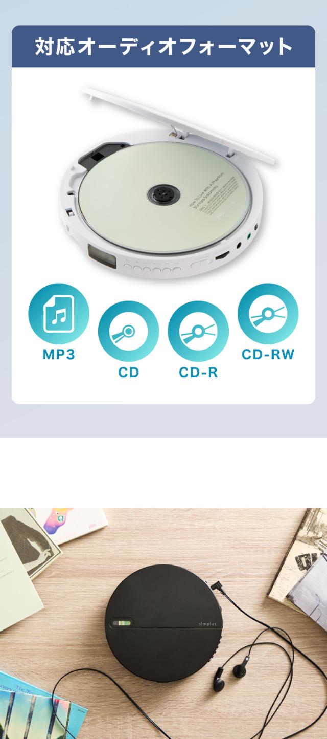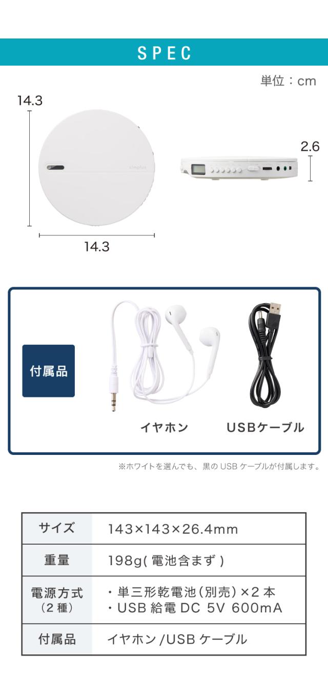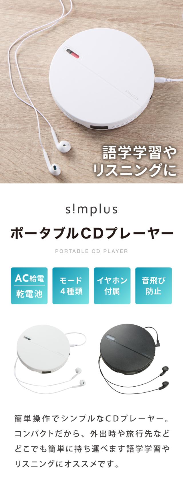 CDプレーヤー ポータブル 2電源対応 simplus 小型 乾電池 USB給電 イヤホン付き リスニング リピート再生 イントロ再生 語学学習 【メーカー保証1年】