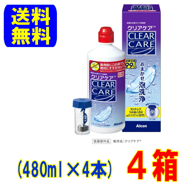 日本アルコン クリアケア【480ml】4本 送料無料 中和用ディスク付き ディスポカップ付き ソフトコンタクトレンズ ケア用品 消毒液洗浄液