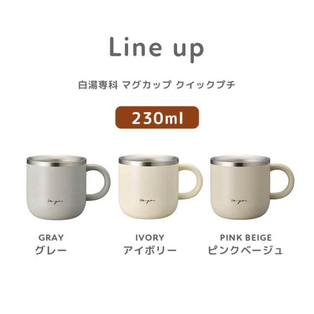 マグカップ DOSHISHA ドウシシャ 白湯専科 保温 おしゃれ かわいい ステンレス タンブラー 230ml クイックプチ OZSM230 GY IV PB 白湯マグ 白湯専用 コップ カップ 温活 グッズ グレー ピンクベージュ アイボリー 吸熱剤 お湯 保温マグ 湯冷まし ダイエット ギフト 簡単 食器