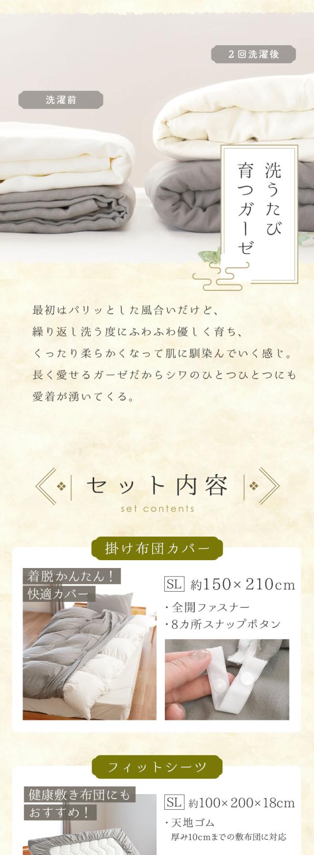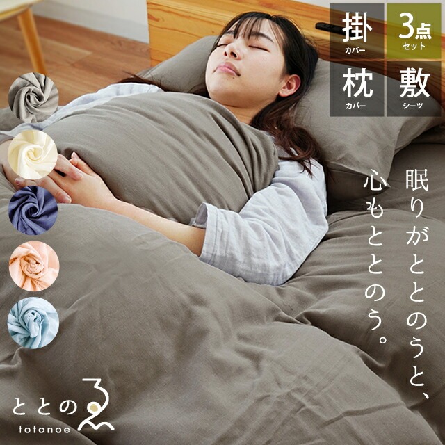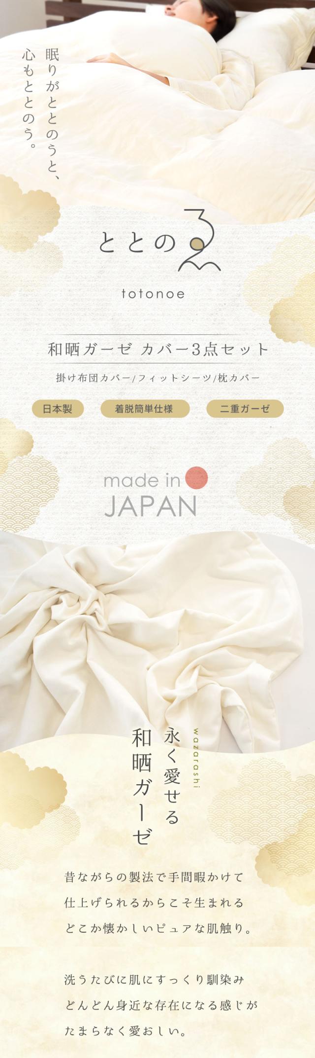 和晒し 2重ガーゼ 布団カバー3点セット シングル ロング ととのゑ 掛けカバー 150×210 シーツ 100×200×18 枕カバー 43×63用 日本製
