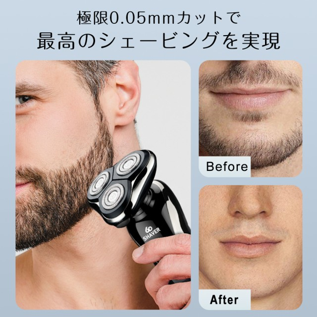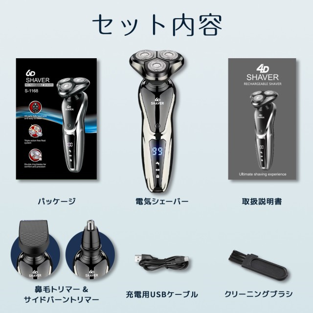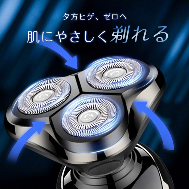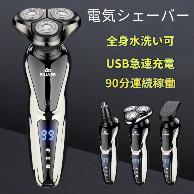 シェーバー 髭剃り 電気シェーバー メンズ 電気カミソリ 電動シェーバー 男性用 低騒音 IPX7防水 全身丸洗い可能 USB充電式 3枚刃 回転式 LED電池残量表示 3in1 電動 お風呂剃り 多機能