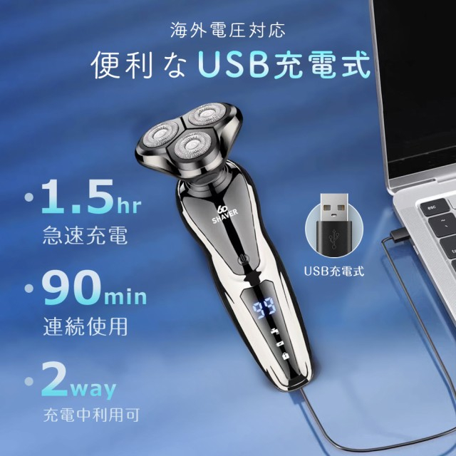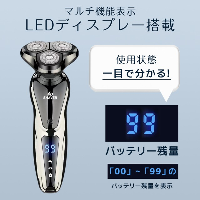 電気シェーバー メンズシェーバー 髭剃り シェーバー ひげそり 電動 電気シェーバー 回転式 IPX7防水 LEDディスプレイー USB充電式 お風呂剃り対応 旅行 持ち運び便利 男性 プレゼント