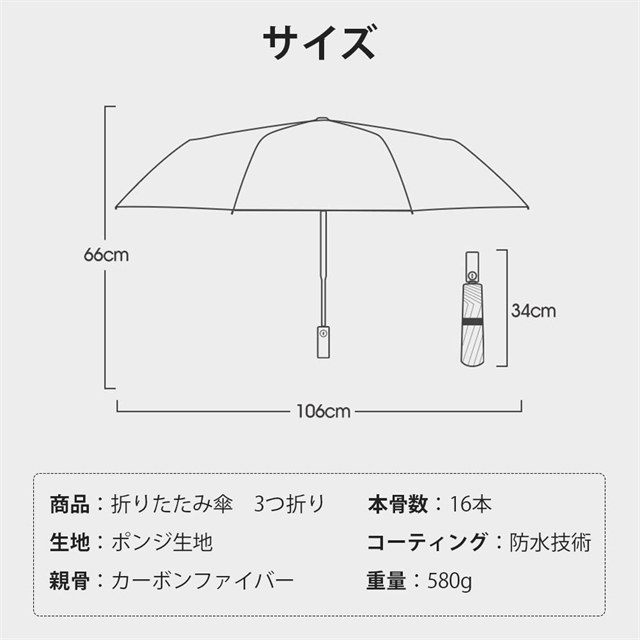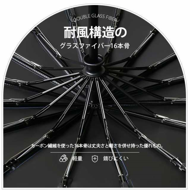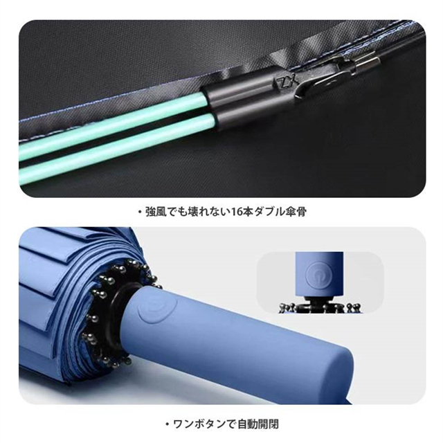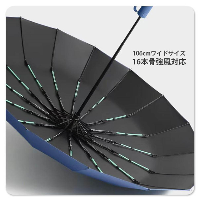 ・16本親骨の折りたたみ傘として、頑丈かつ耐久性あり、壊れにくい素材で長くご使用いただけます。