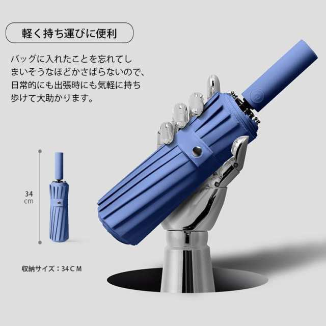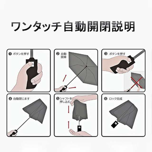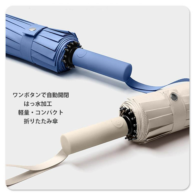 ・自動開閉が実現されたこの折り畳み傘、ボタンを押すだけ素早く開閉できます。片手でパッと開くことができるので、雨の日のクルマの乗り降りや、荷物の多いときも便利に使えます。