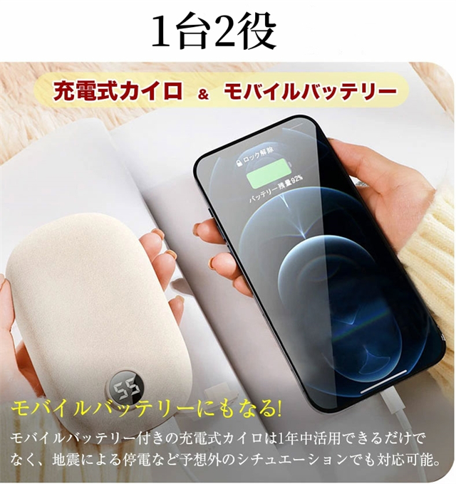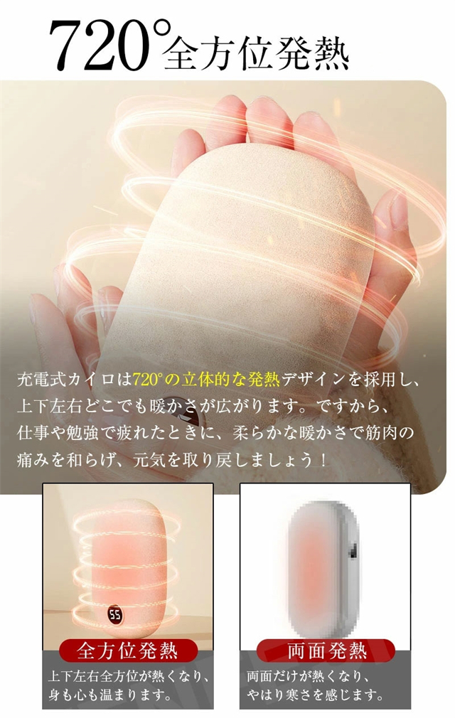 充電式カイロ 電気カイロ モバイルバッテリー 電熱カイロ 大容量 6000mAh 最高55℃ 携帯カイロ 速暖 カイロ充電式 軽量 コンパクト 全面発熱 防寒グッズ