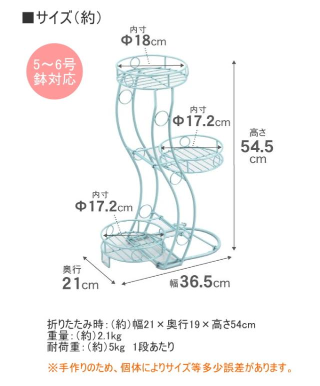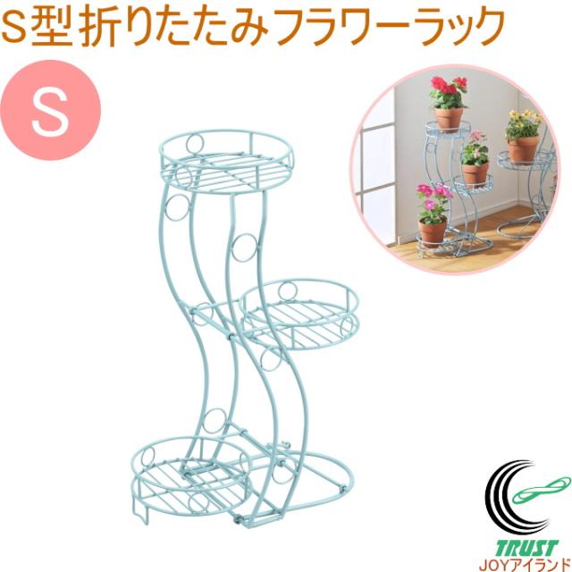 心春 S型折りたたみフラワーラック S ブルー 50145 送料無料 園芸用品 スタンド フラワースタンド ガーデニング ガーデン ラック フラワーラック S型 折りたたみ アイアン 3段 棚 花台 スチール製 室内 屋外 鉢置き 植木鉢 整理 おしゃれ インテリア SANKA サンカ