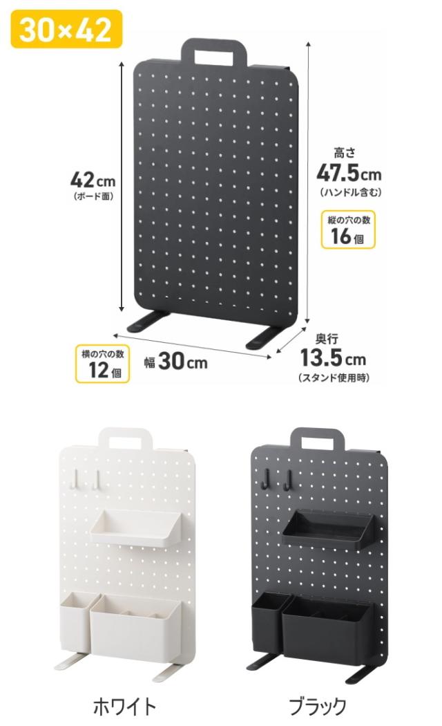 ペグボード 3042 1個入 ペグボード パンチングボード 有孔ボード マグネットボード スチール製 収納 スタンド 卓上 頑丈 オフィス オシャレ おしゃれ キッチン 台所 デスク 玄関 フック 穴あきボード 壁面収納 幅30cm 幅45cm インテリア ブラック ホワイト SANKA サンカ