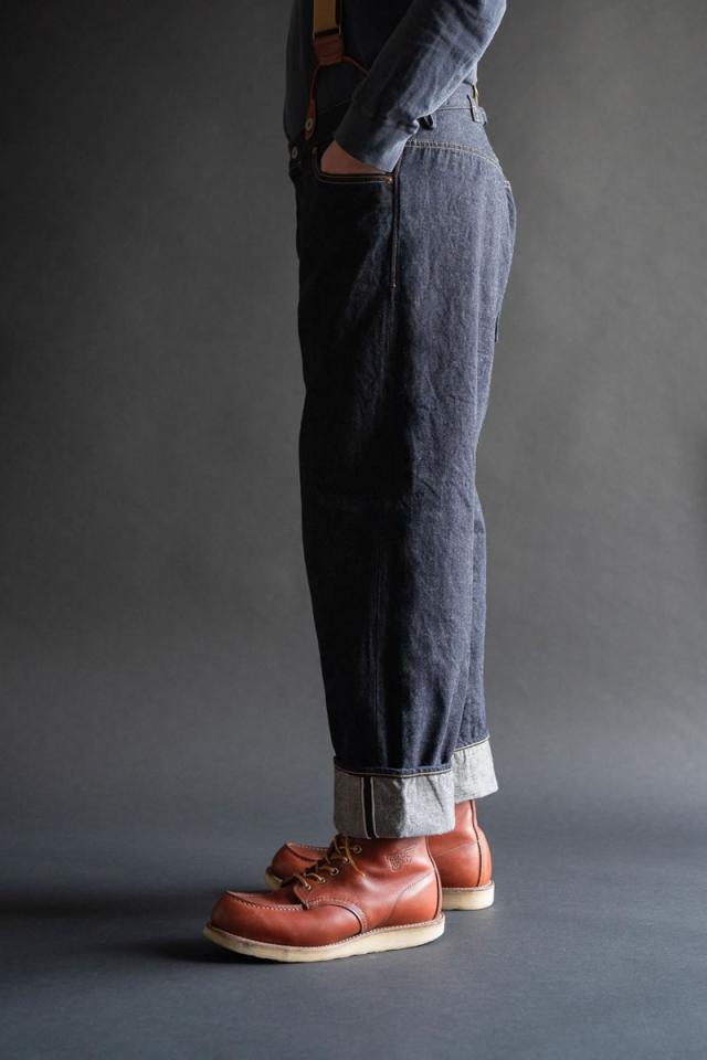 1880年、ジーンズやデニムという言葉がまだ存在しなかった時代、労働着としてのOVERALLから派生したのがサスペンダーで吊るして着る「WAISTOVERALL」でした。