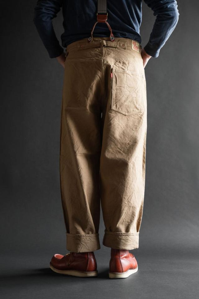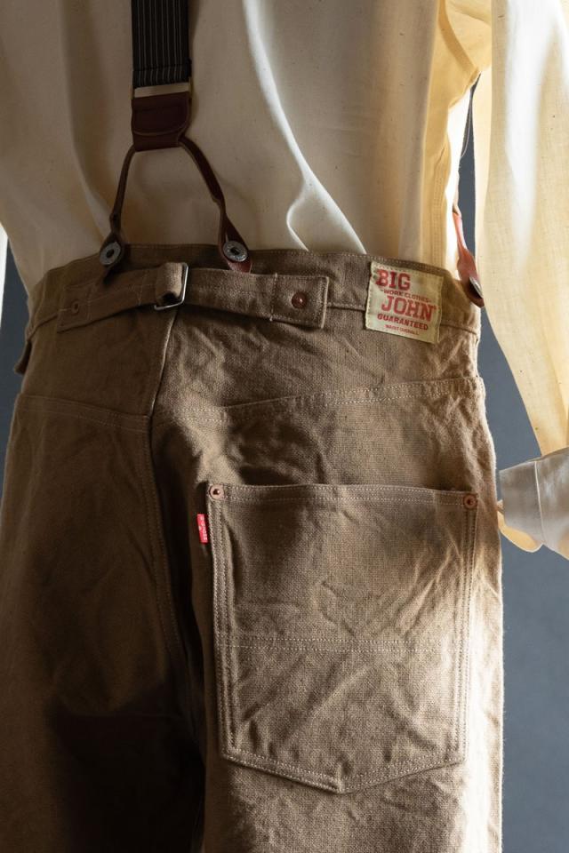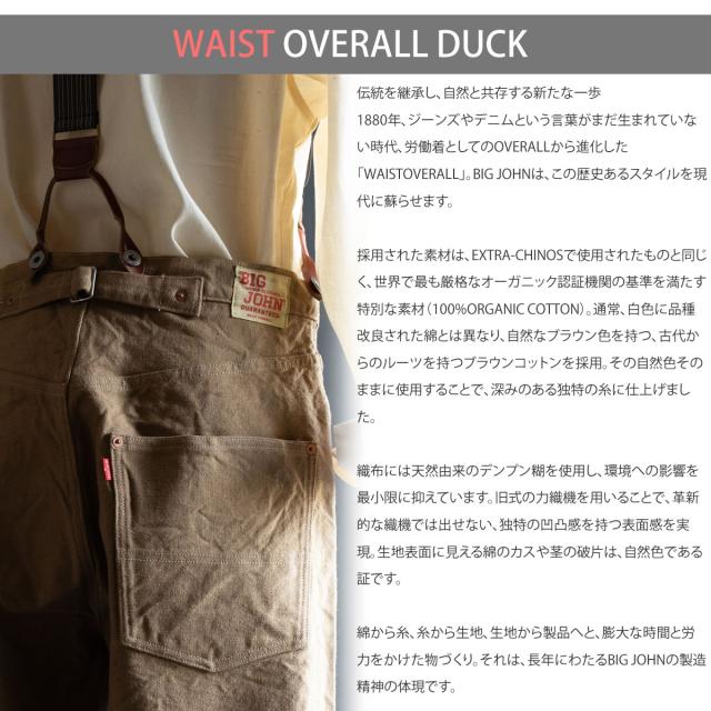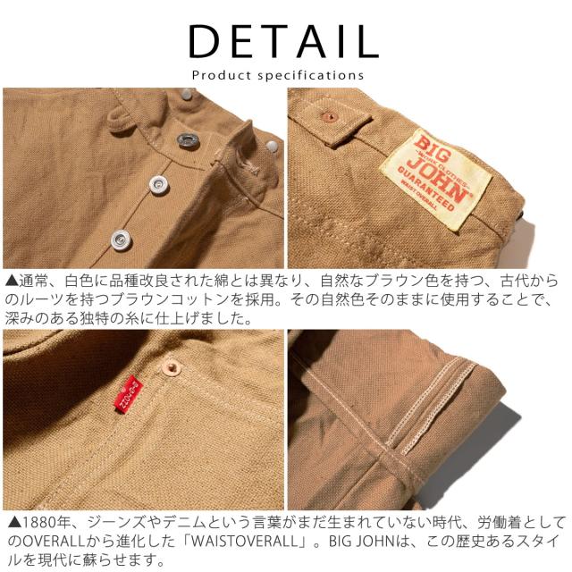 【 ジーンズのルーツ ウエストオーバーオール 】ブラウンダックパンツ ビッグジョン 14オンス セルビッチ ワイドストレート BIG JOHN WAISTOVERALL DUCK ( M101(41) ) ブラウンコットンリラックスフィット ボタンフライ メンズ アーベン