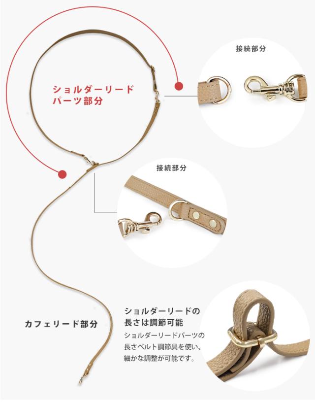 お散歩カフェリード\ショルダーリードパーツ追加できます/犬 リード 小型犬 合成皮革 迷子防止 脱走防止 おでかけ 丈夫 頑丈 おしゃれ 合皮 チワワ マルチーズ ペット用品 ギフト プレゼント 人気 e.x.p.japon チワワ リード ペットリード