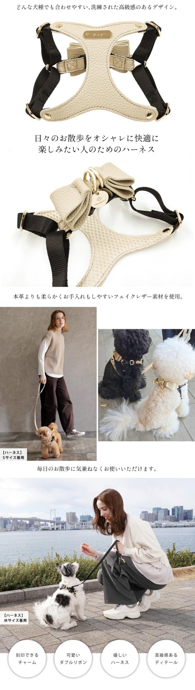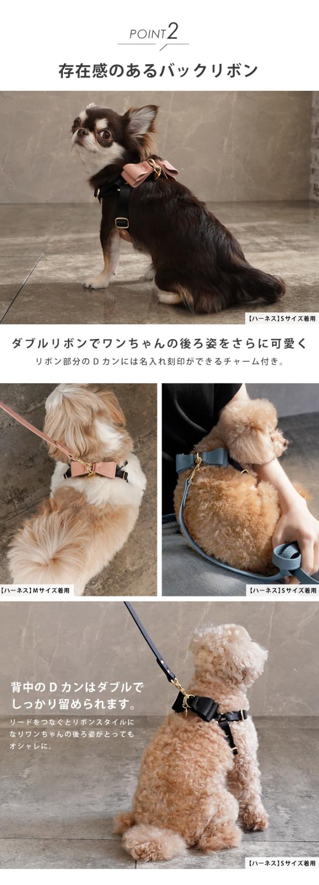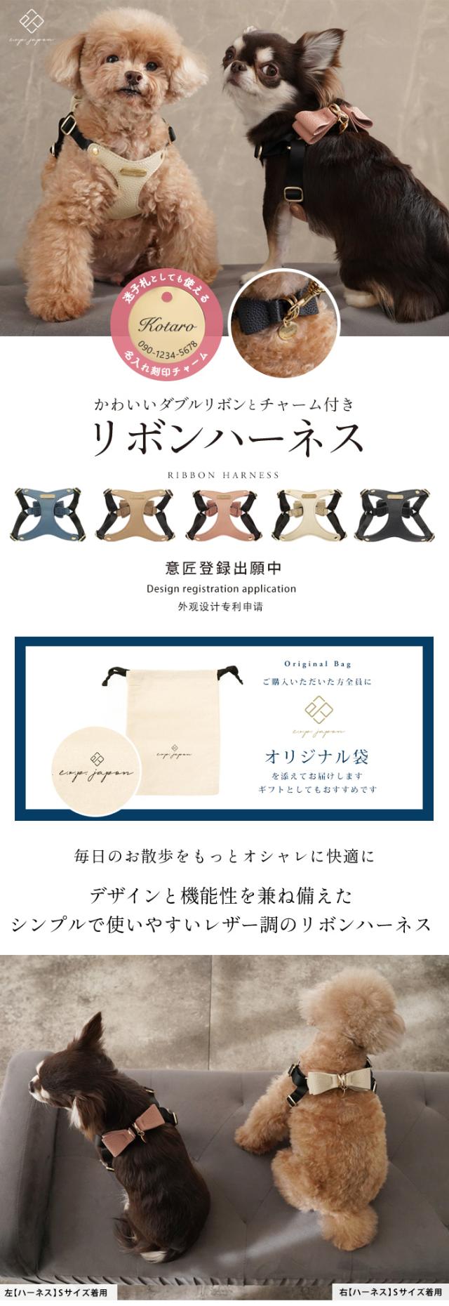 リボンハーネス 犬 ハーネス 胸パッド付き 胴輪 メッシュクッション 小型犬 合成皮革 バックリボン お散歩 おでかけ お名前入り 迷子札 電話番号 おしゃれ 合皮 くすみカラー ペット用品 ギフト セミオーダー プレゼント e.x.p.japon