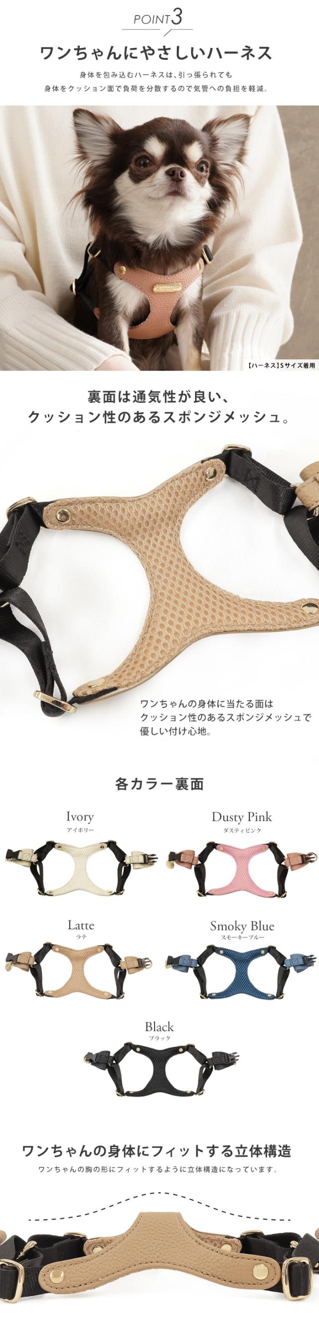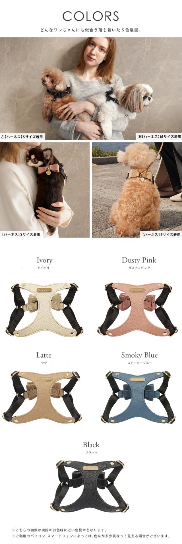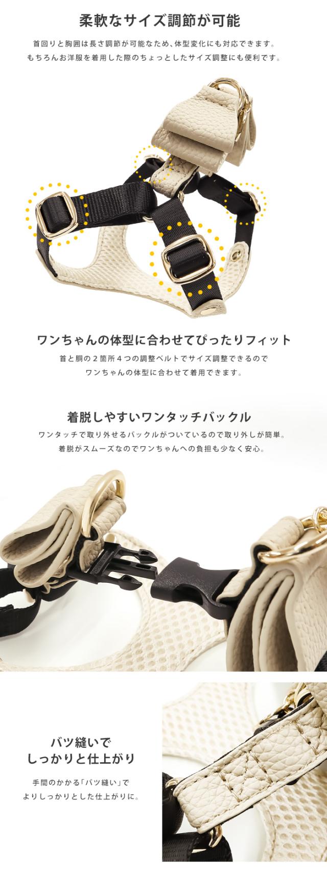 リボンハーネス 犬 ハーネス 胸パッド付き 胴輪 メッシュクッション 小型犬 合成皮革 バックリボン お散歩 おでかけ お名前入り 迷子札 電話番号 おしゃれ 合皮 くすみカラー ペット用品 ギフト セミオーダー プレゼント e.x.p.japon