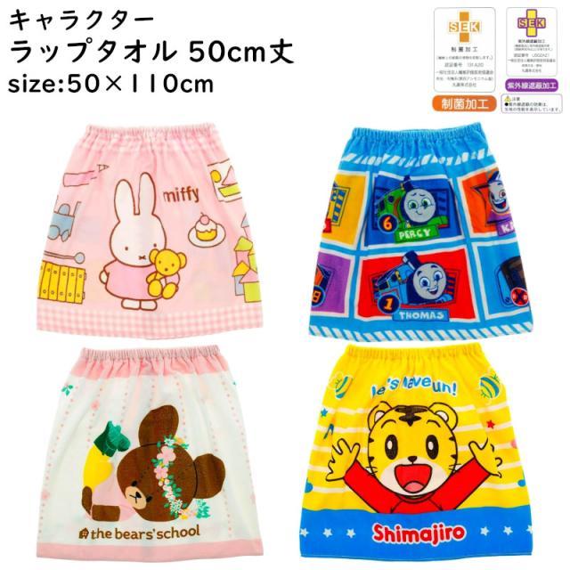 キャラクター ラップタオル 50cm丈 50×110cm 綿100% 制菌加工 紫外線遮蔽加工 巻きタオル プールタオル SSサイズ コットン かわいい プリント 子ども キッズ プール 小学生 中学生 学校 スポーツ 水泳 スイミング 海水浴 子供