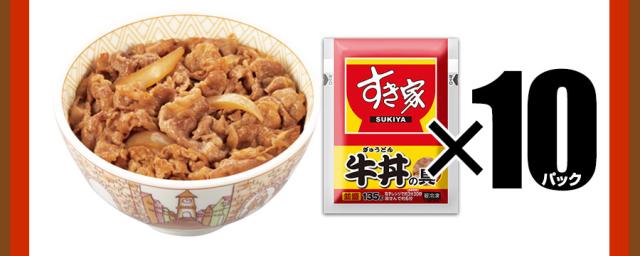 | 内容量 | 『すき家 牛カルビ丼の具』・・・10パック入り(1パックあたり120グラム) 『すき家 牛丼の具』・・・10パック入り(1パックあたり135グラム) |