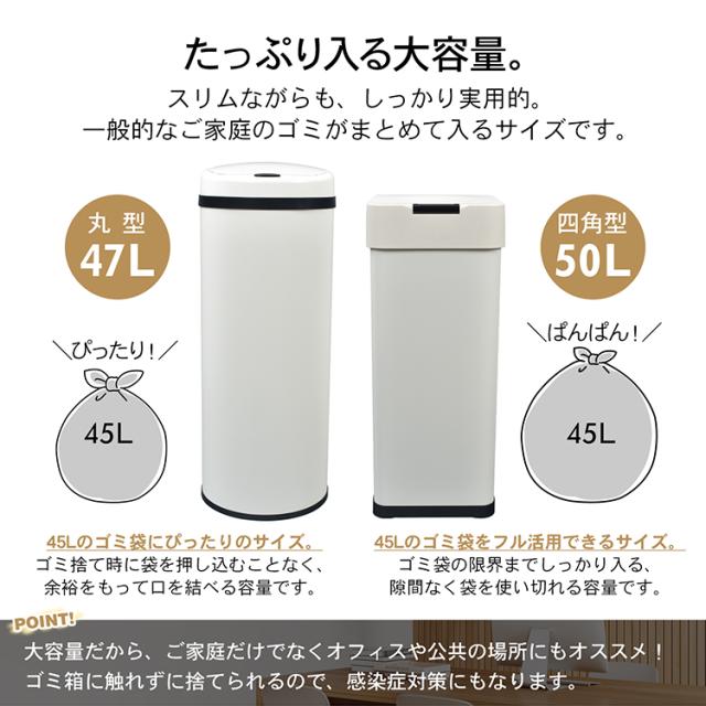 新生活 自動開閉式ゴミ箱 人感センサー ゴミ箱 50リットル 47リットル 袋対応 自動ゴミ箱 ふた付き 自動開閉 ごみ箱 自動センサー 50l 47l キッチン ダストボックス フタ付き 蓋付き スリム 省スペース in024