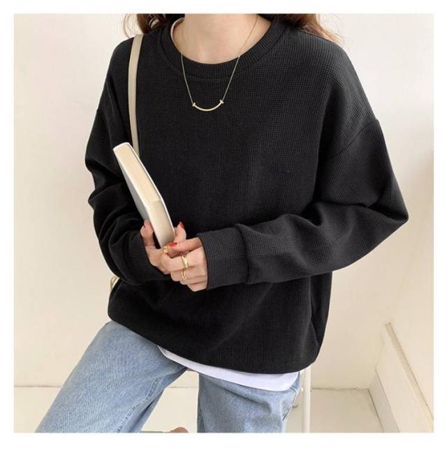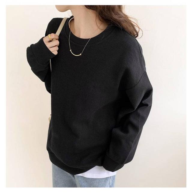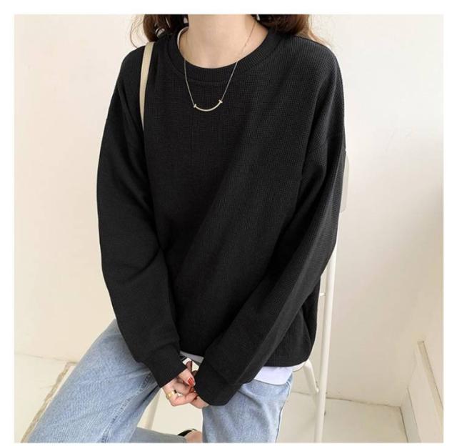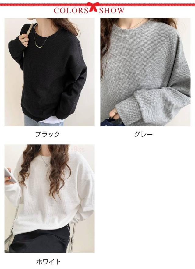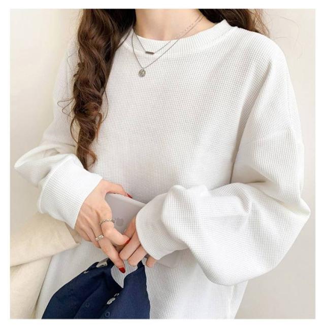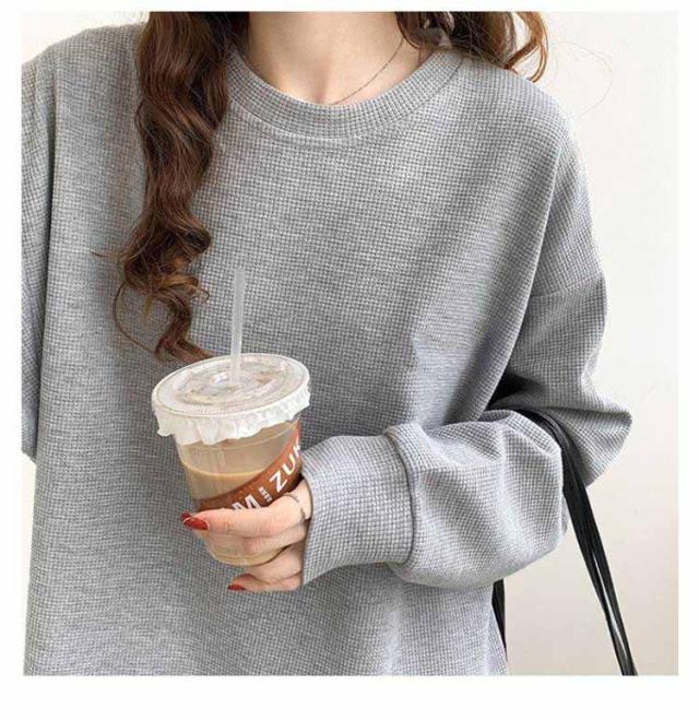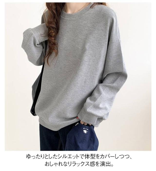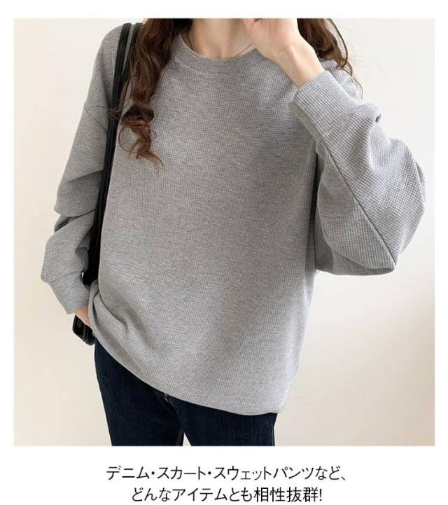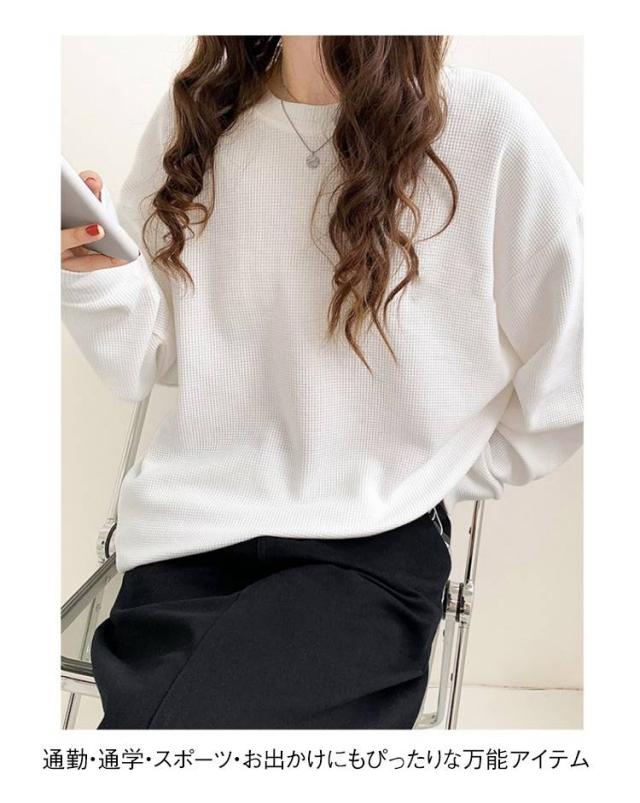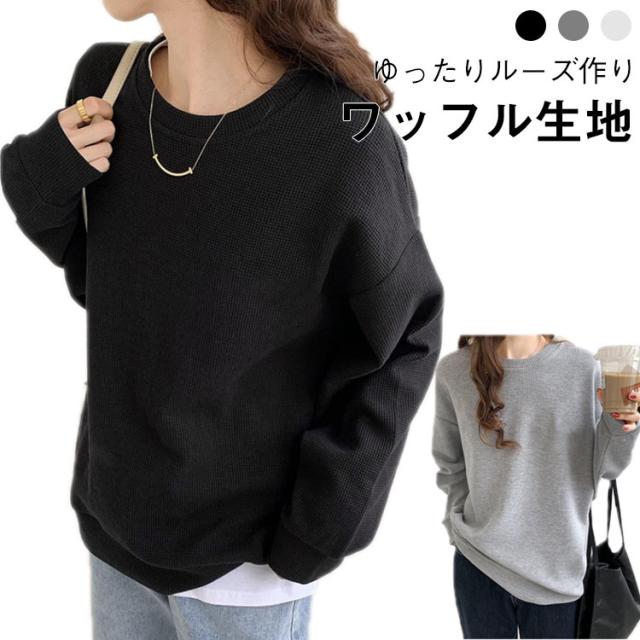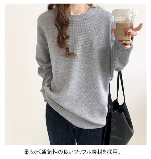 レディース トレーナー ワッフルTシャツ トレーナー 長袖 クルーネック トップス ドロップスリーブ ラウンドネック tシャツ ゆったり プルオーバー 大きいサイズ シンプル おしゃれ 20代 30代 ワッフル 春 秋
