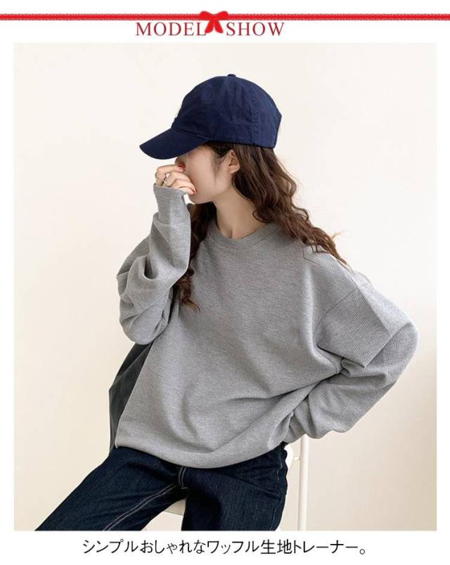 | シンプルおしゃれなワッフル生地トレーナー。 ゆったりとしたシルエットで体型をカバーしつつ、おしゃれなリラックス感を演出。 柔らかく通気性の良いワッフル素材を採用。 軽やかで肌触りも優しく、春秋にぴったりの着心地◎ デニム・スカート・スウェットパンツなど、どんなアイテムとも相性抜群! 通勤・通学・スポーツ・お出かけにもぴったりな万能アイテム♪ | |