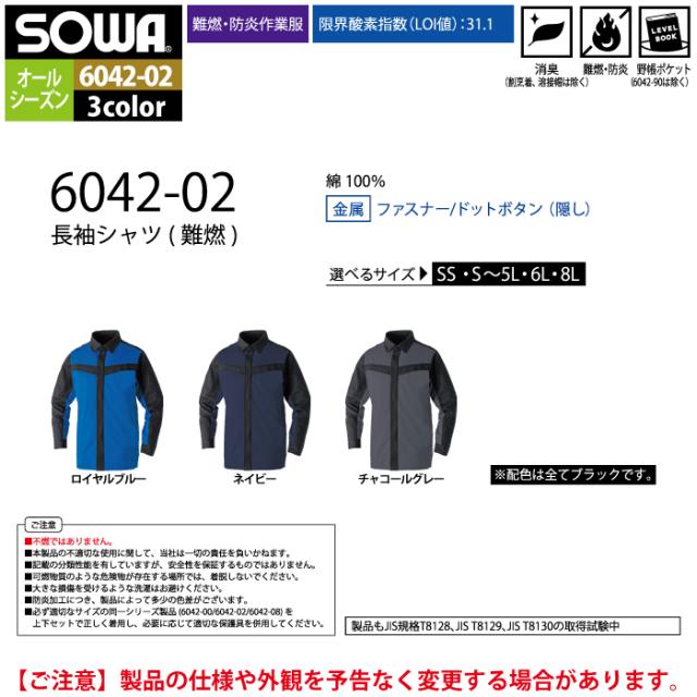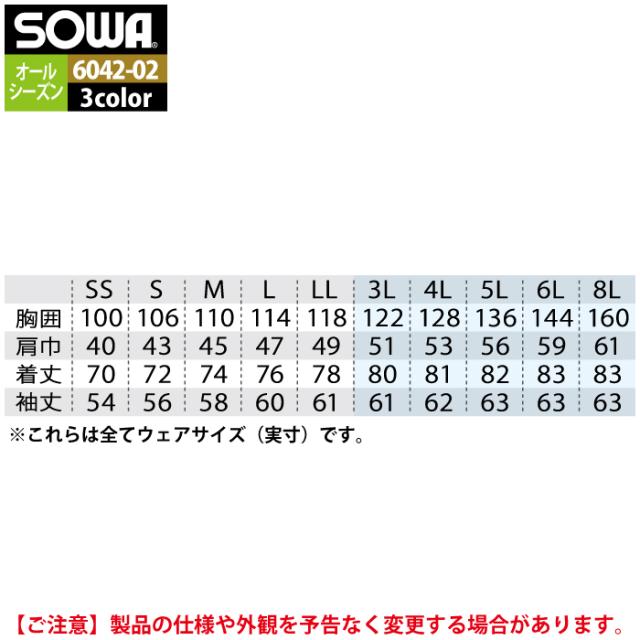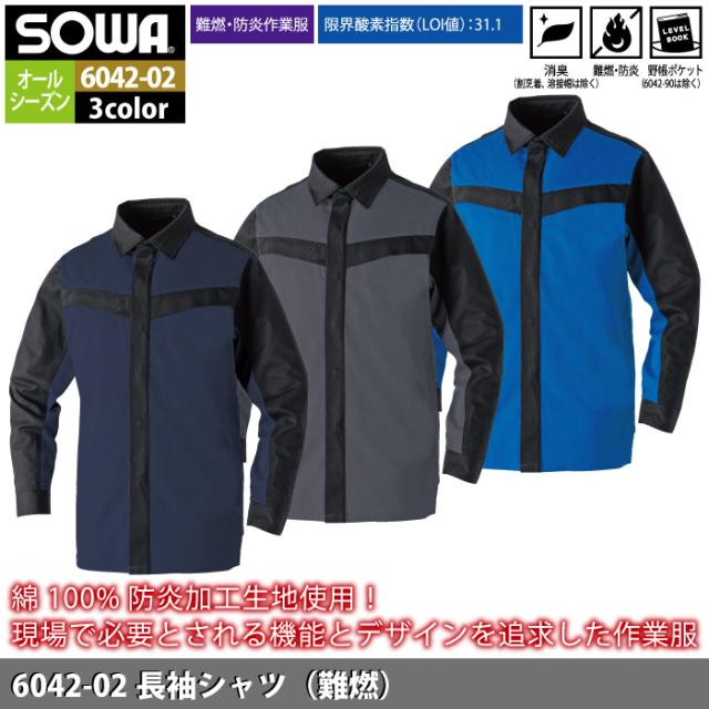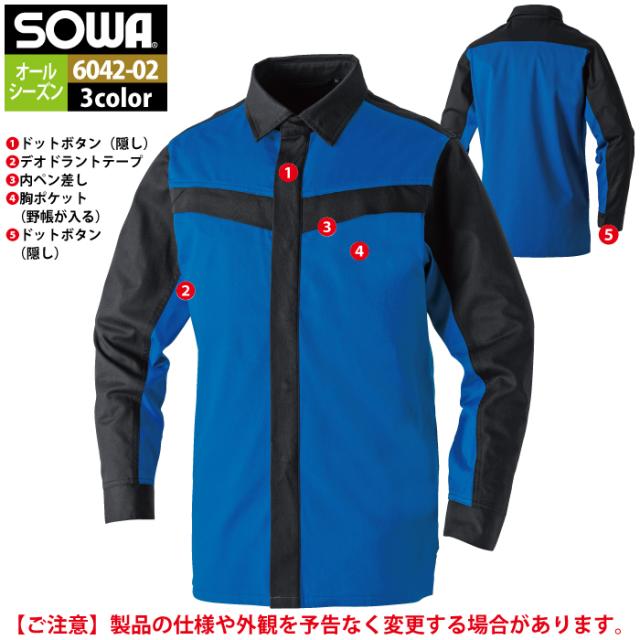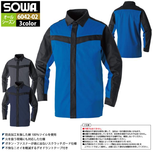 桑和 SOWA 作業服 6042-02 長袖シャツ 8L 作業着 春夏