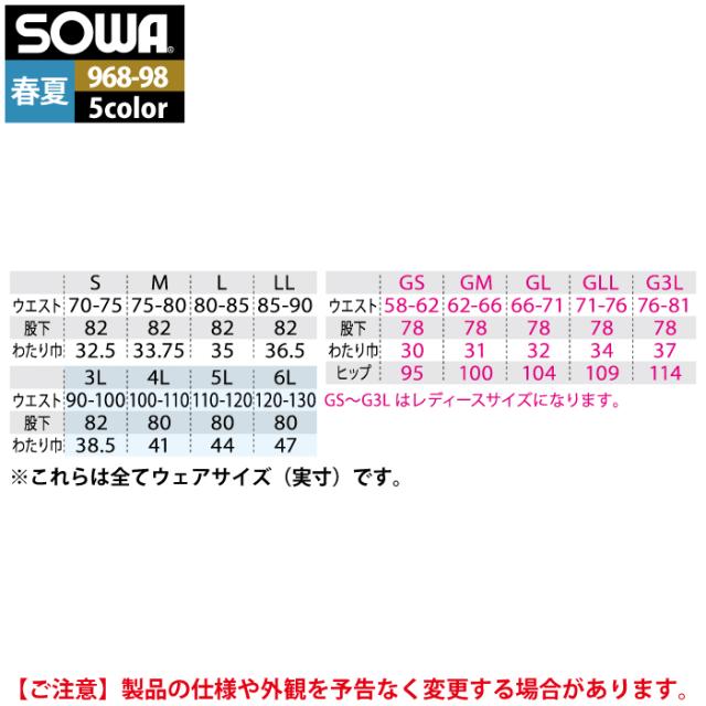 桑和 SOWA 作業服 作業ズボン 968-98 カーゴパンツ 4L 作業着 春夏