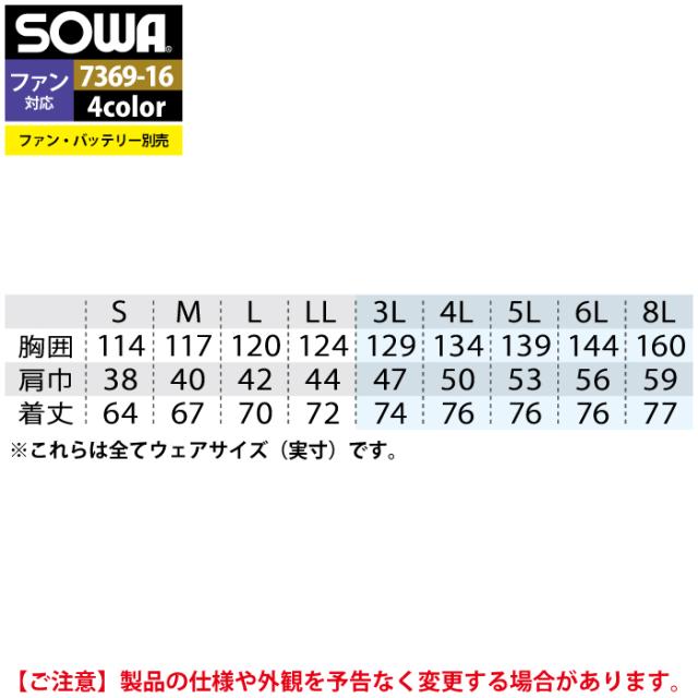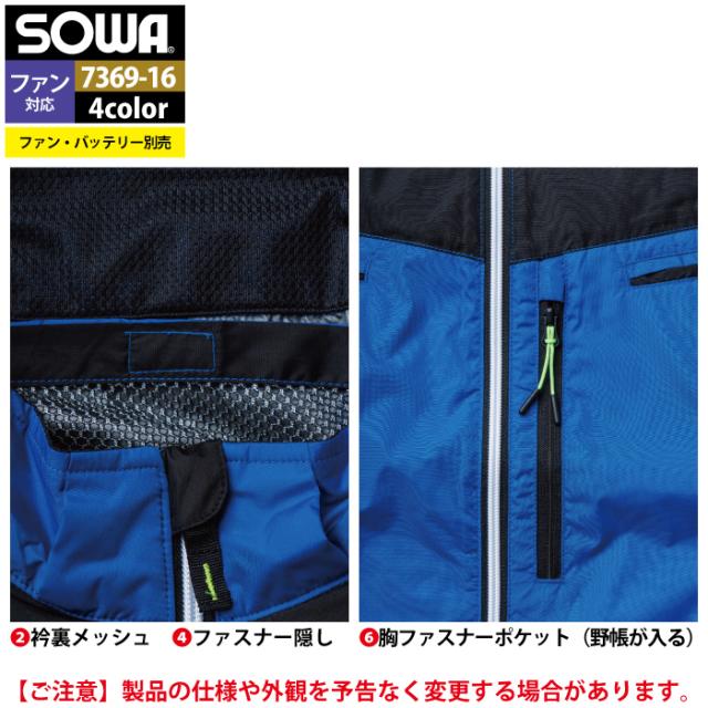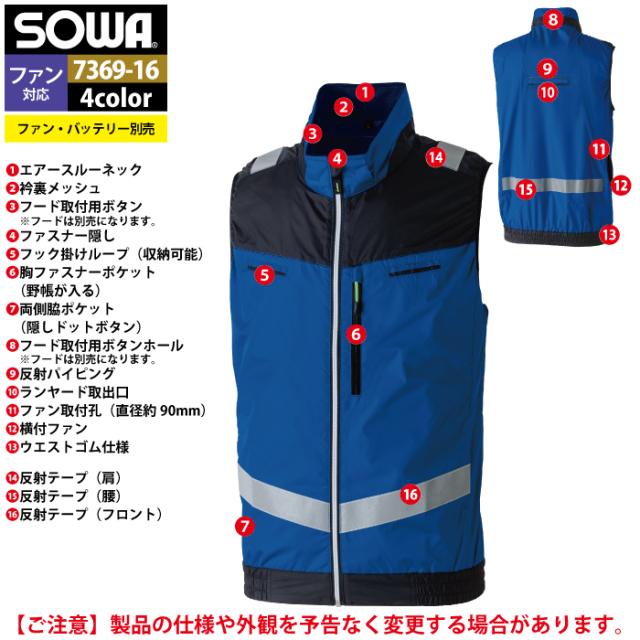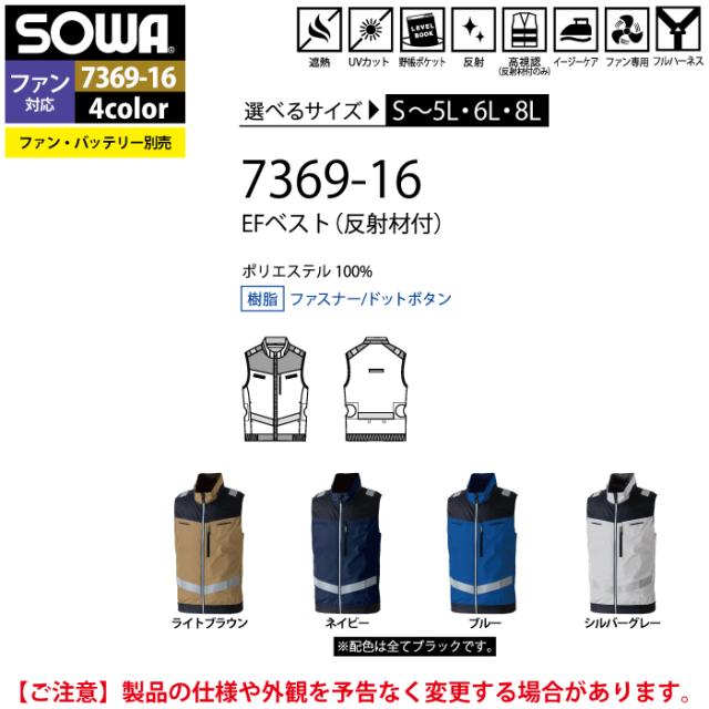 ファン付きウェア(服のみ) 桑和 SOWA 作業服 7369-16 EFベスト 6L 作業着 春夏