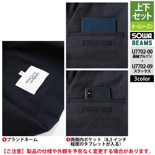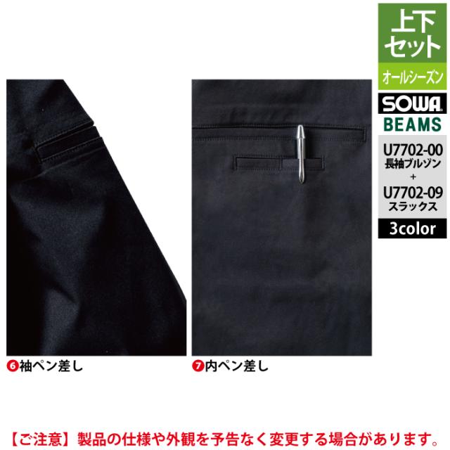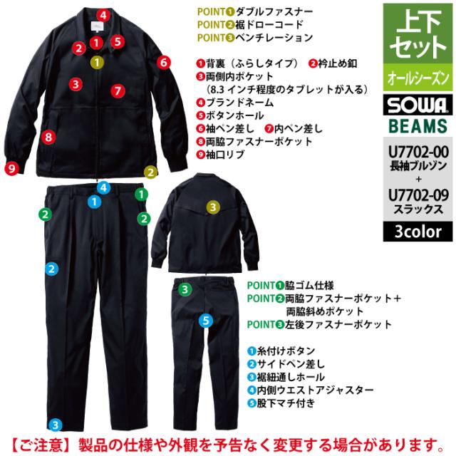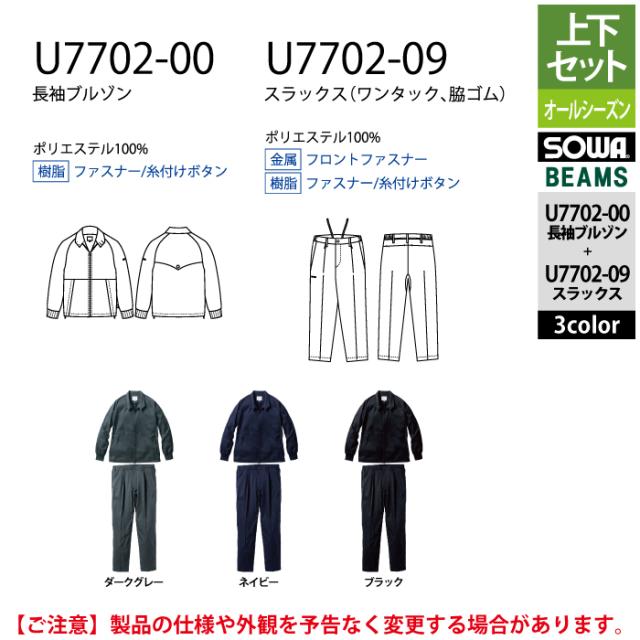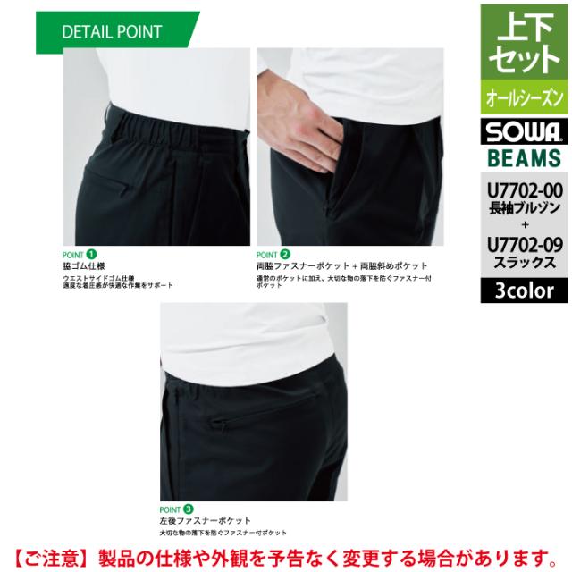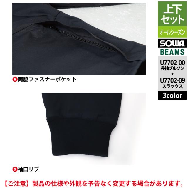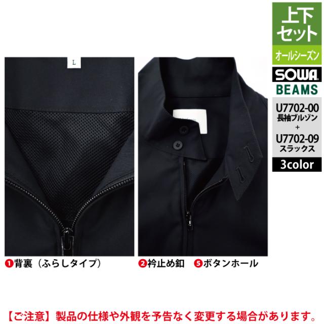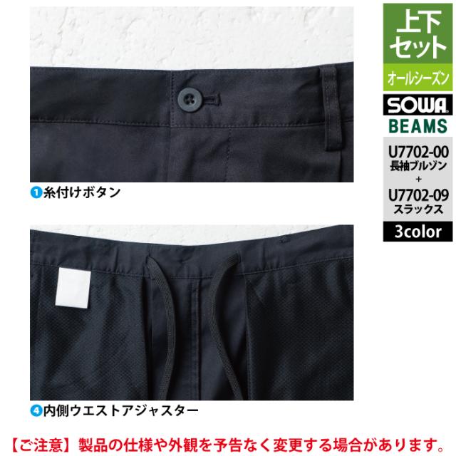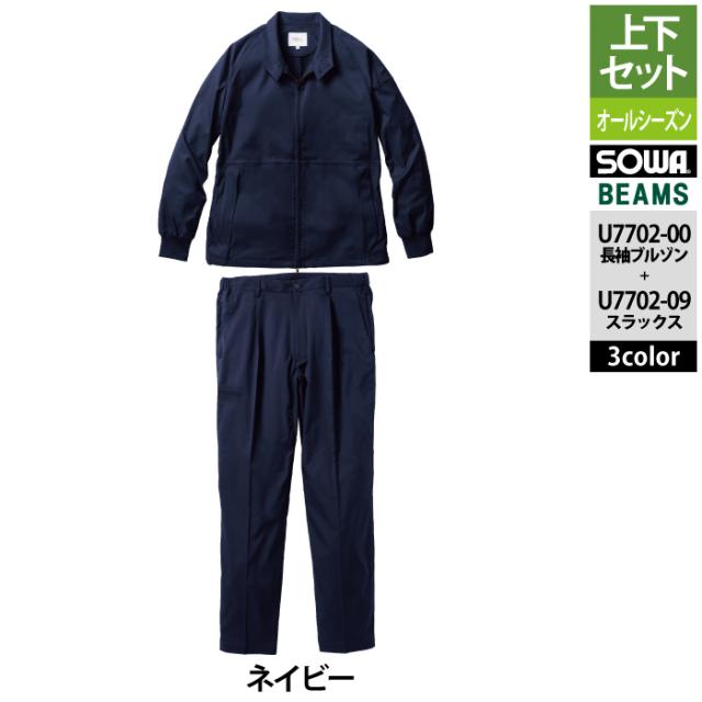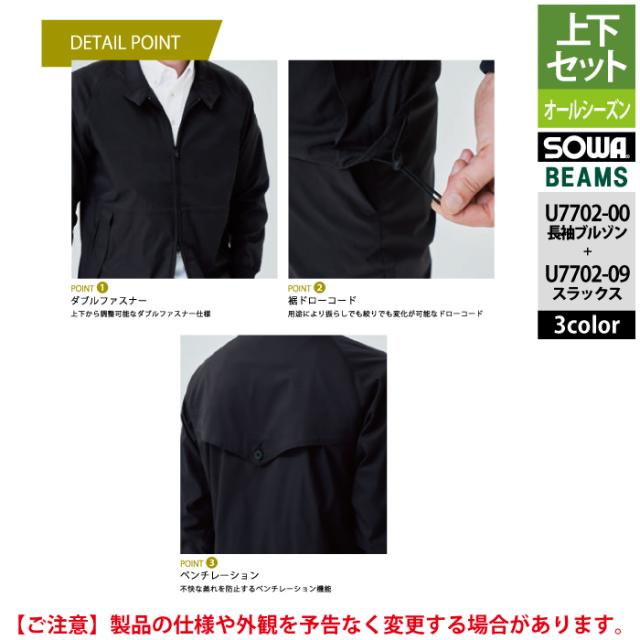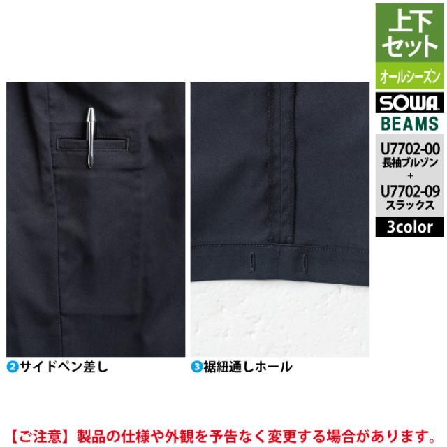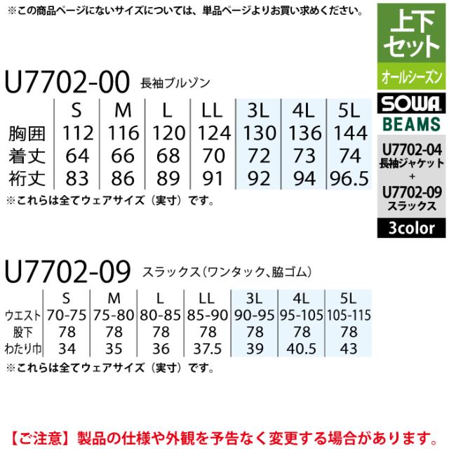桑和 SOWA 作業服 上下セット U7702-00 長袖ブルゾンS-3L と U7702-09 スラックス S-3L 作業着 作業ズボン オールシーズン