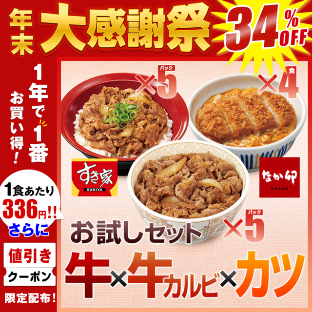 1年で今が1番お得!お試しセット牛×牛カルビ×カツ すき家牛丼の具5パック×牛カルビ丼の具5パック×なか卯カツ丼の具4食【送料無料】【冷凍(クール)】